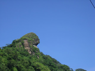 A Guatemalan sculpture overlooking the grounds. Building in back was being worked on.