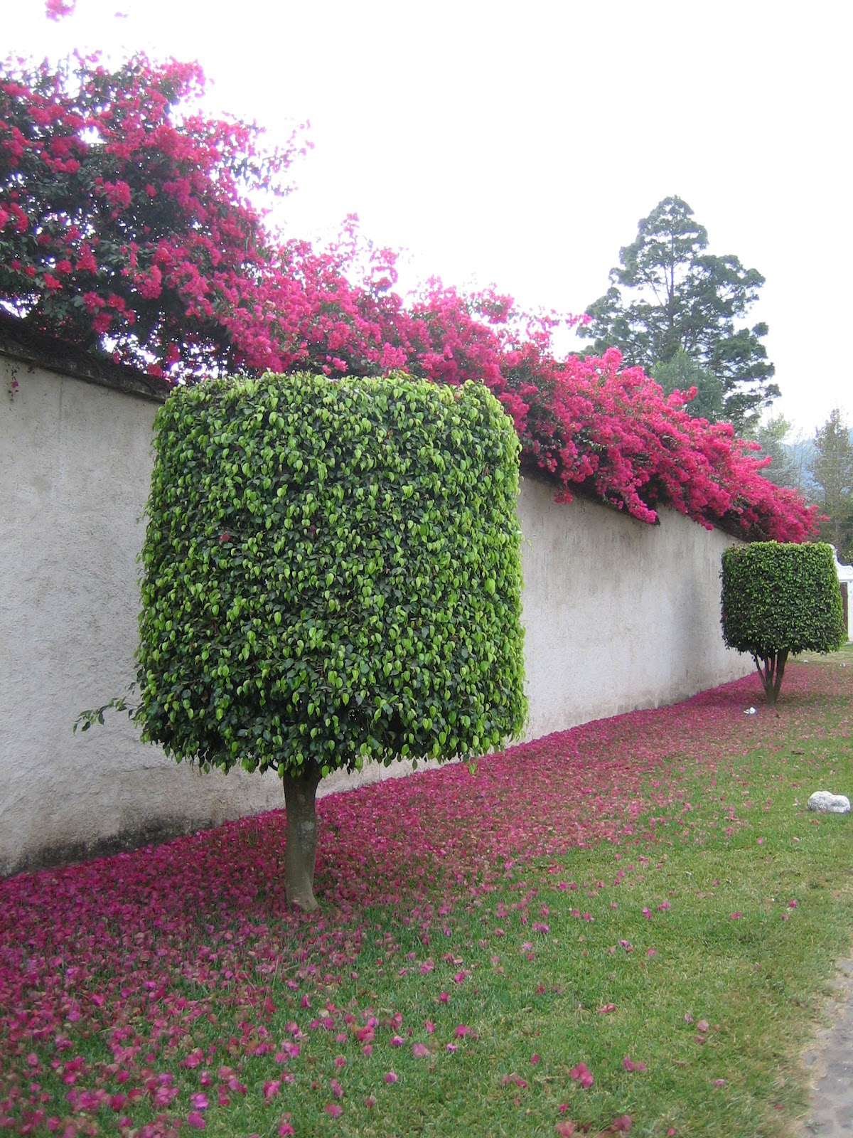 Outside our yard. this is our 10' wall and the bougenvilla on top loosing its blossoms.